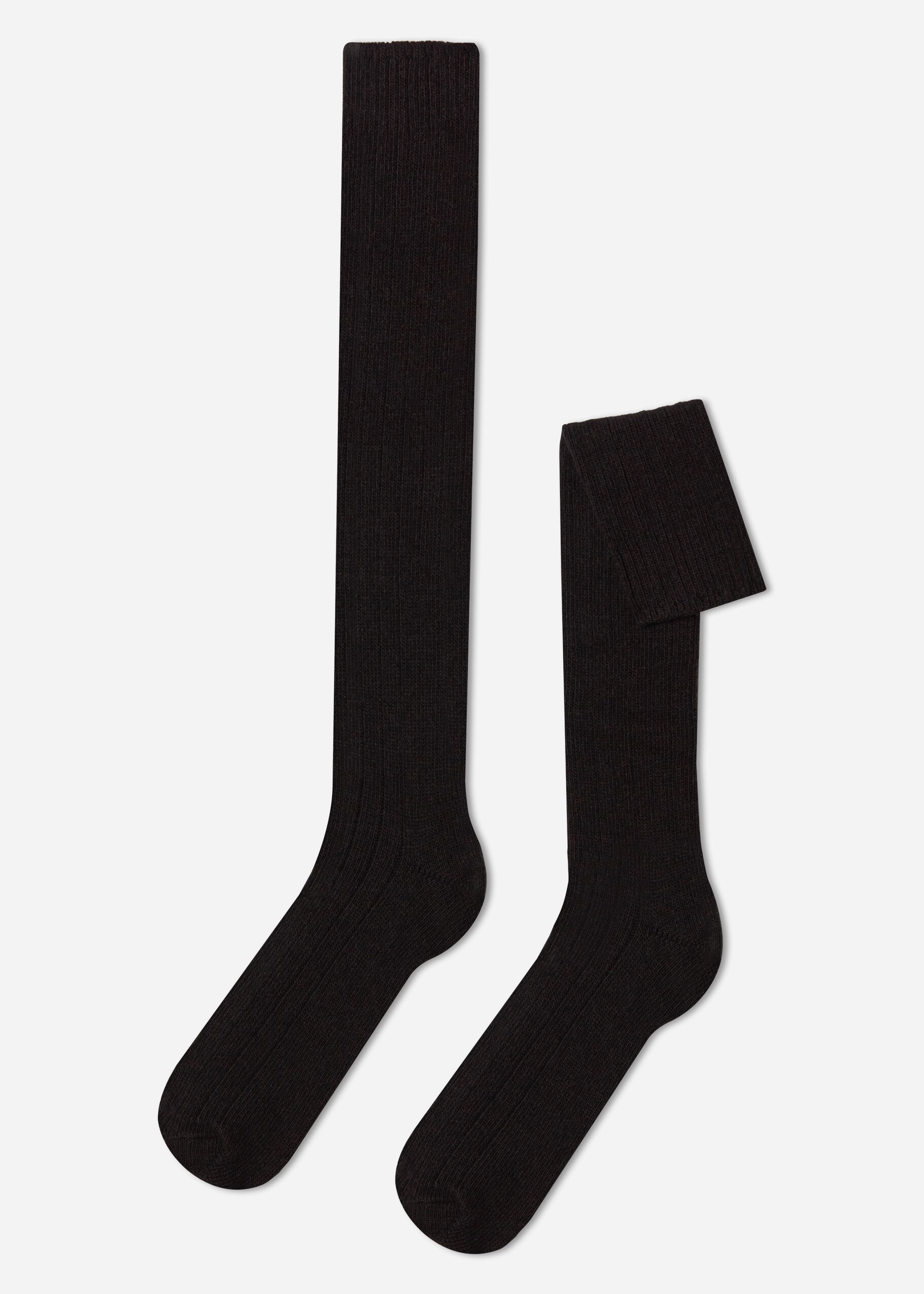 Men’s long ribbed socks with wool and cashmere, a warm and comfortable fabric.