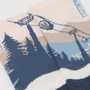Women’s short socks with cashmere and a terry cotton sole, with a sporty look and pattern inspired by stunning mountain town scenery. Perfect for facing winter days in comfort and with a touch of elegance, they offer softness and warmth, ideal for those seeking a glamorous look and wanting to stand out during outdoor activities.