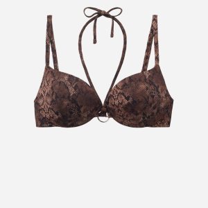 Padded Push-Up Swimsuit Top Brown Snake
