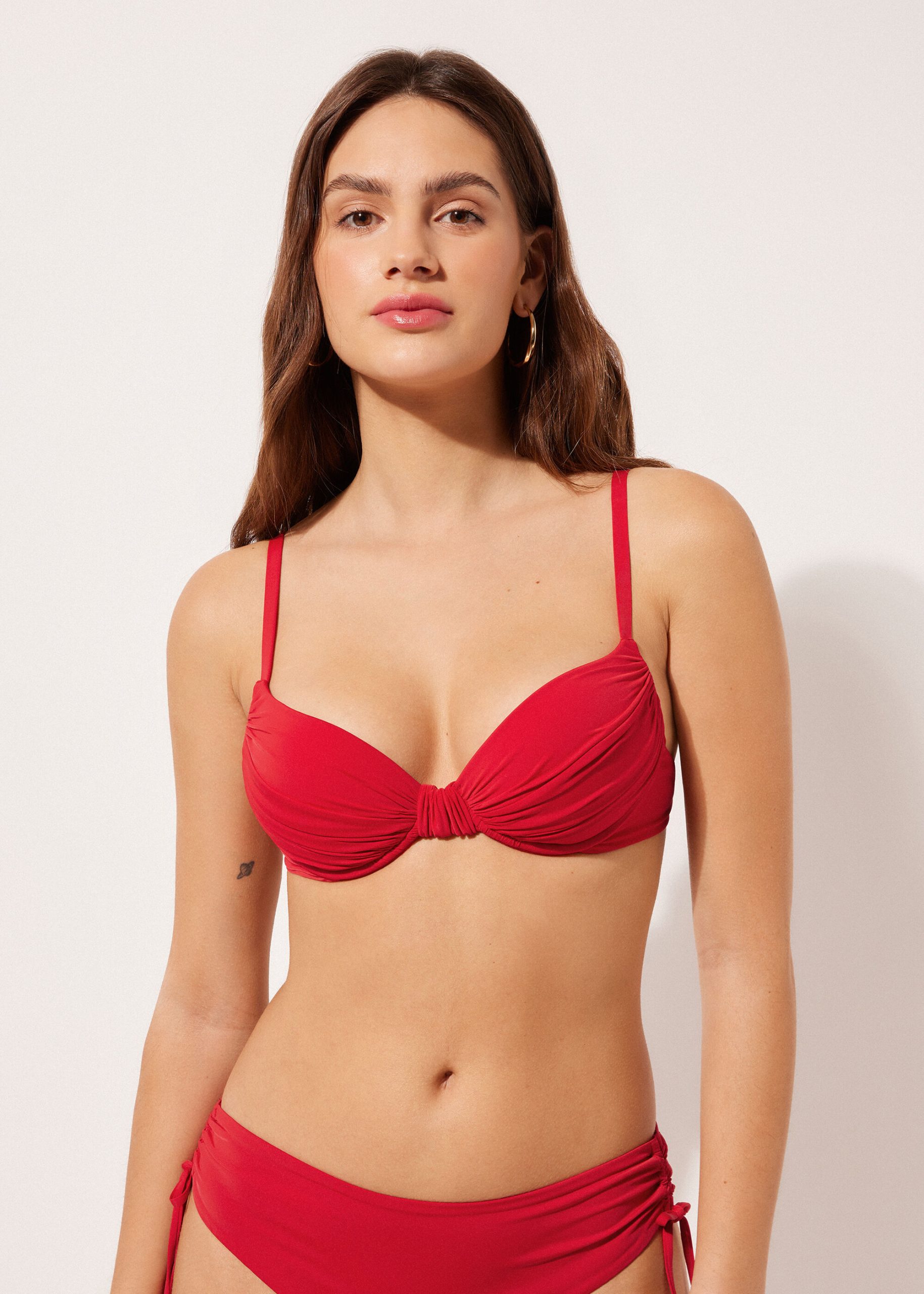 Push-up bikini top with graduated padding and underwire for more volume at the bust. The extremely soft fabric makes it pleasant to wear, offering a light and comfortable feel on the skin. Adjustable straps and hook closure with two adjusters.