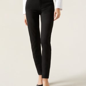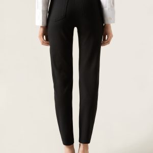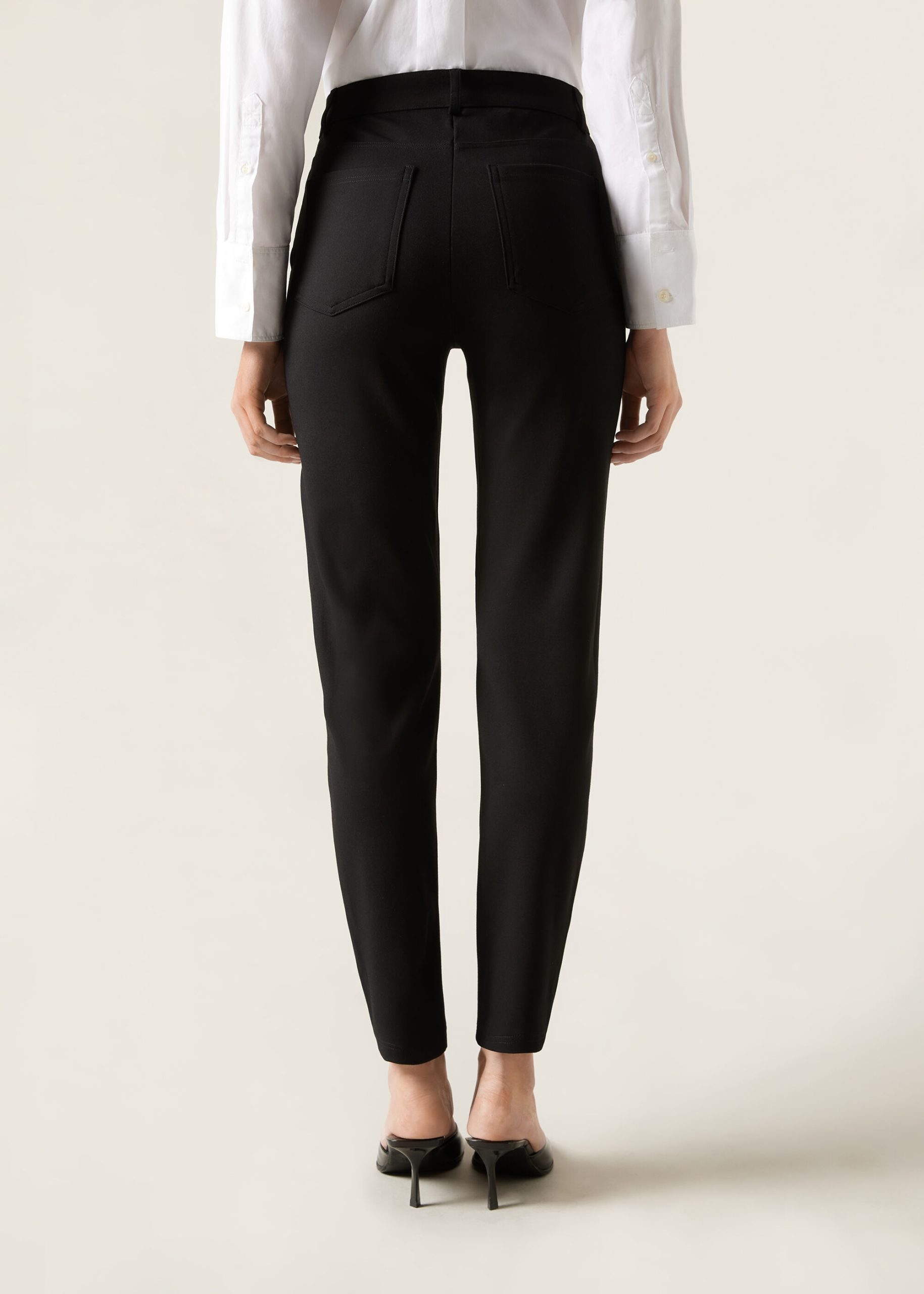 Women’s slim leggings in punto Milano with zipper, button and belt loops. Real front and back pockets.