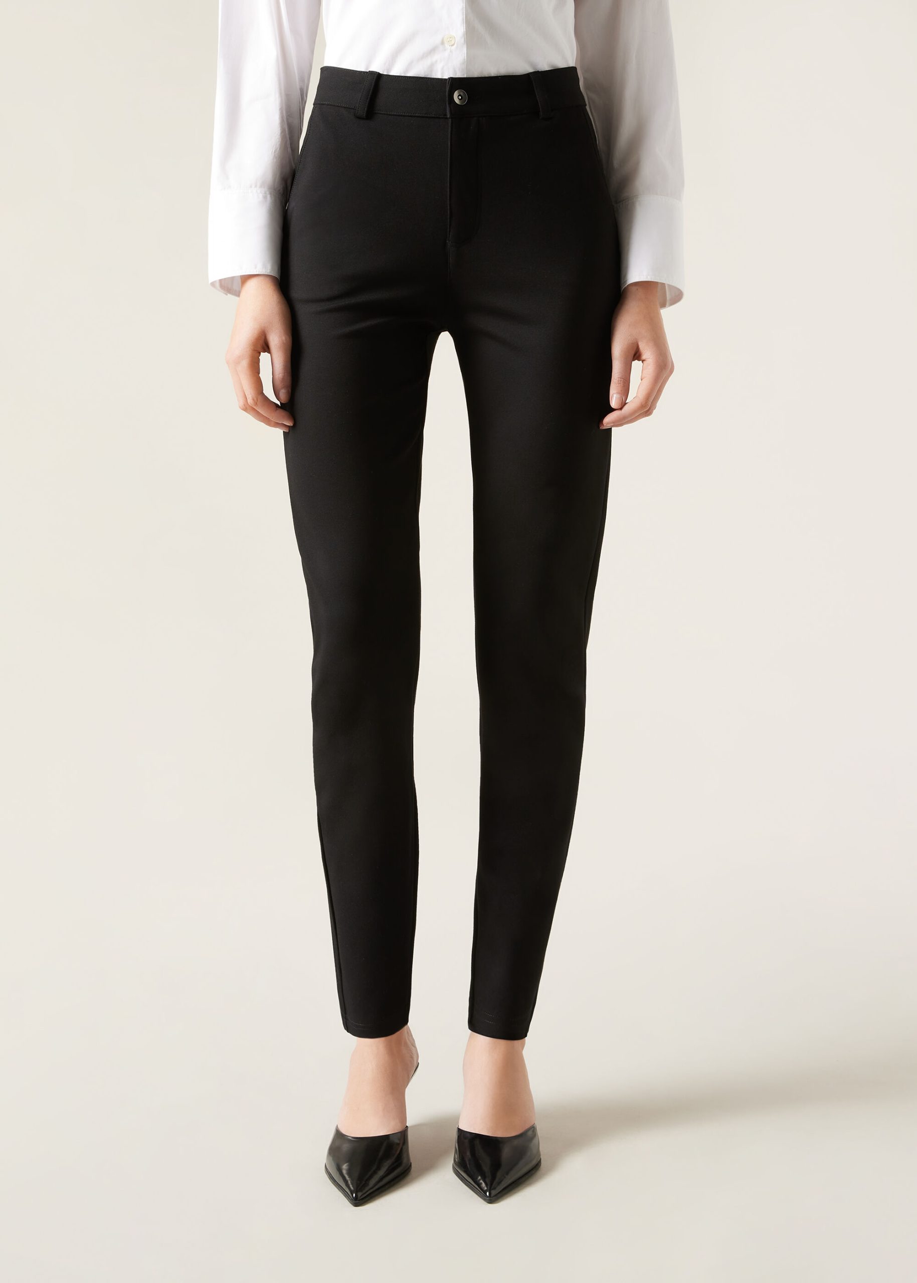 Women’s slim leggings in punto Milano with zipper, button and belt loops. Real front and back pockets.