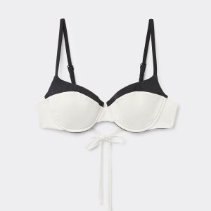 Push-up bikini top with lightly padded cups and underwire, designed to guarantee support and provide volume. Featuring a refined design, it stands out due to the elegant layering effect that adds a touch of fashion and sophistication, perfect for a chic and modern summer look. The adjustable straps and string tie closure on the back ensure an adjustable fit.