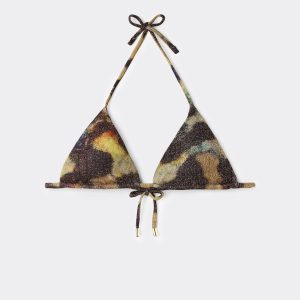 Removable Padding Triangle Swimsuit Top Sparkling Camouflage