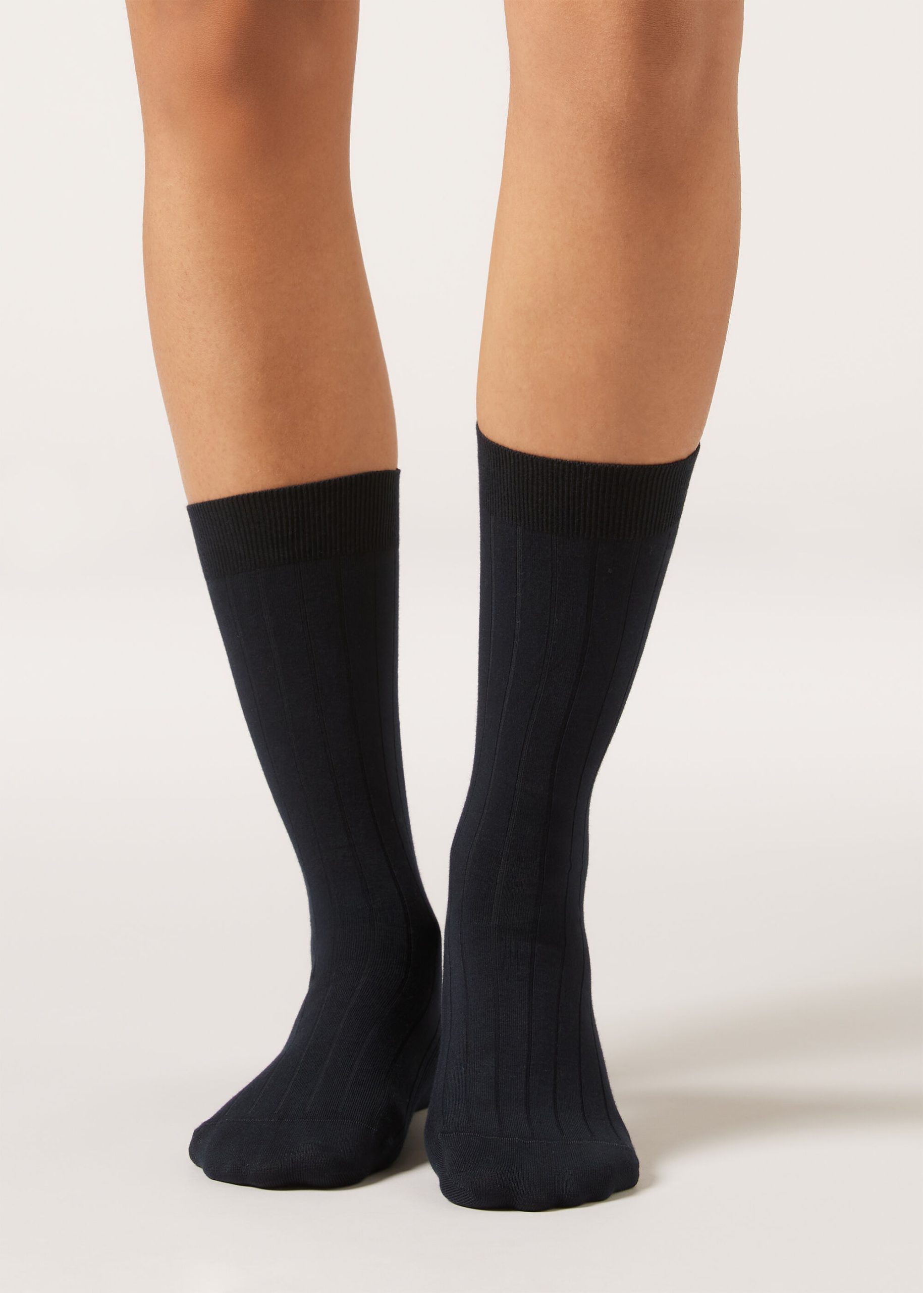 Women’s mid-calf socks in soft, wide-ribbed cotton combine comfort and style. The mid-calf height makes them versatile for any outfit. Ideal for those looking for a classic look and a feeling of pure comfort.
