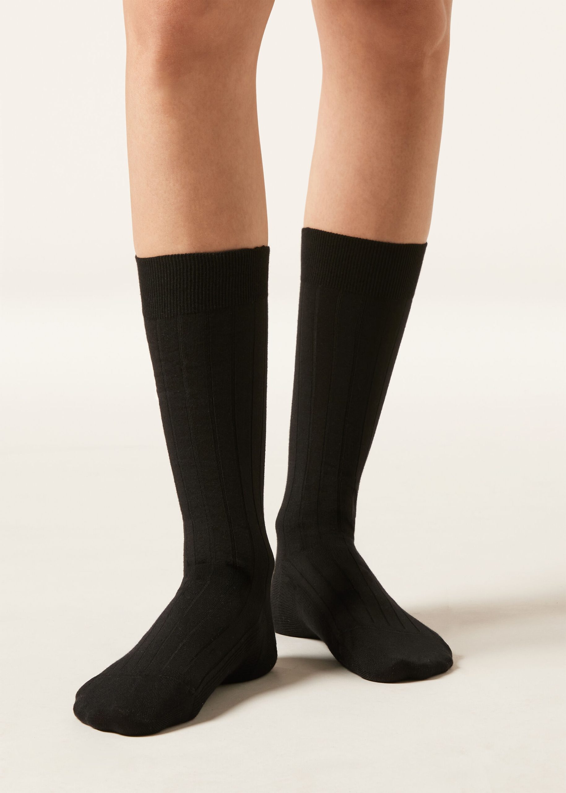 Women’s mid-calf socks in soft, wide-ribbed cotton combine comfort and style. The mid-calf height makes them versatile for any outfit. Ideal for those looking for a classic look and a feeling of pure comfort.