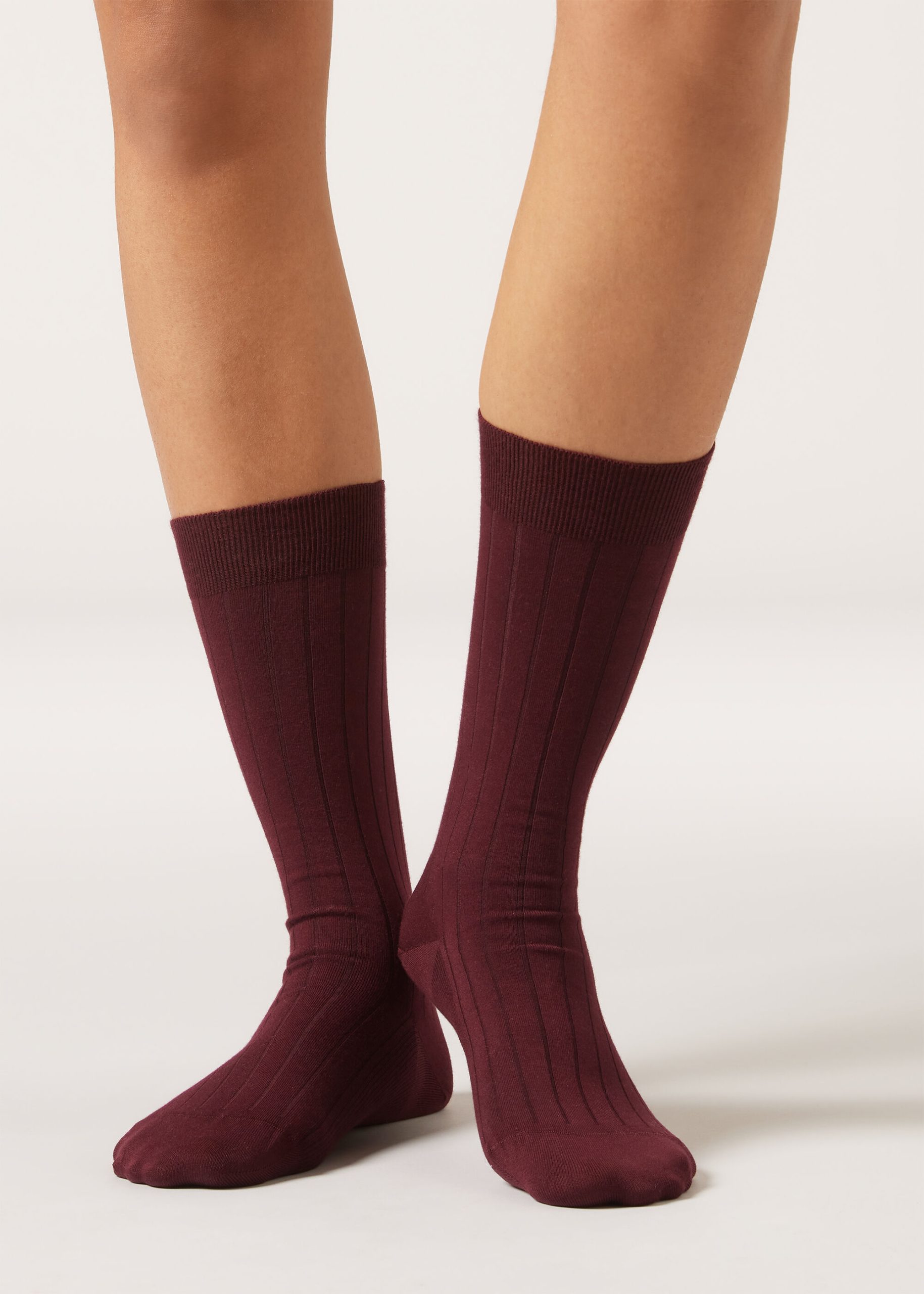 Women’s mid-calf socks in soft, wide-ribbed cotton combine comfort and style. The mid-calf height makes them versatile for any outfit. Ideal for those looking for a classic look and a feeling of pure comfort.