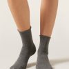 Women’s short ribbed cotton socks with romantic trim detailing.