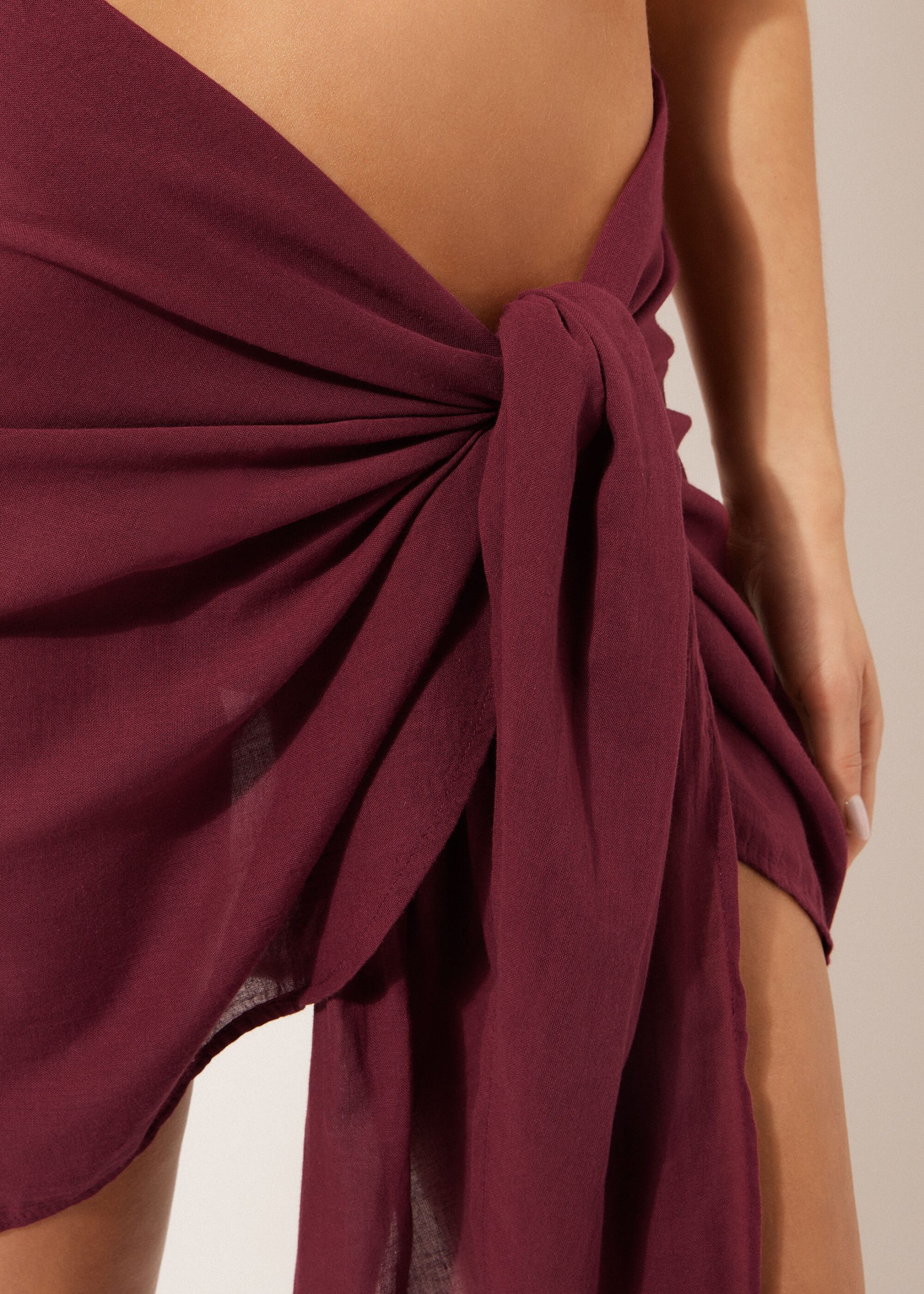Short cotton sarong, soft and lightweight, ideal for finishing a beach look. Easy to tie around the waist, it provides comfort and style on summer days.