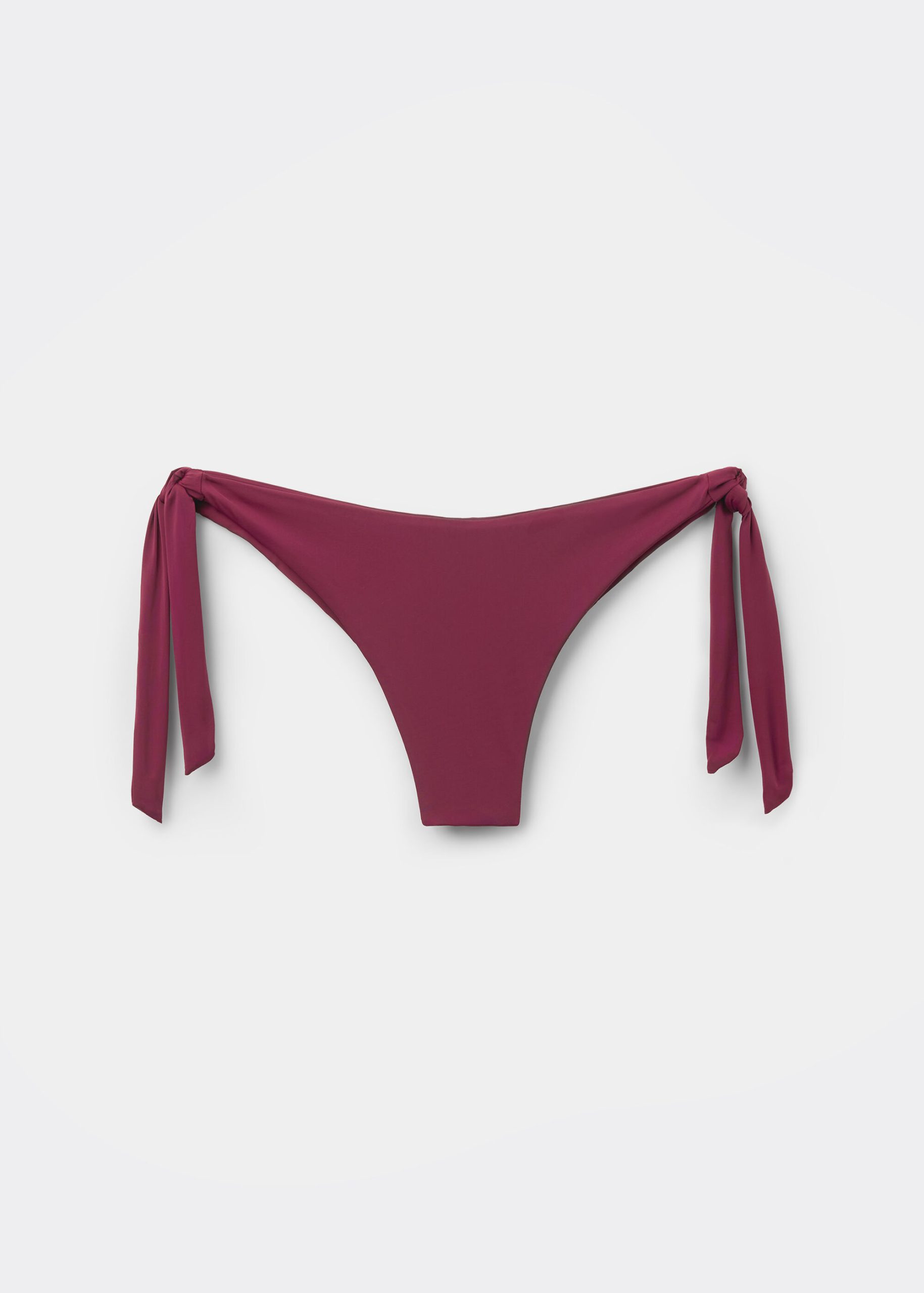 Elevate your swimwear with our Brazilian side tie bikini, designed for a customizable fit and modern silhouette. Featuring adjustable ties at the hips, these bikini bottoms allow you to tailor the fit perfectly to your shape, ensuring comfort and security for all-day wear. The slightly rounded front provides versatile styling options, whether worn in a classic fit or with adjusted higher sides for a leg-lengthening effect that enhances your natural curves. Crafted from luxuriously soft fabric, this adjustable Brazilian bikini offers a lightweight, breathable feel, making it ideal for long days at the beach or poolside lounging. The back features a central seam that enhances the fit, creating a sculpted, flattering look. Perfect for women seeking both style and practicality, these bikini bottoms combine premium materials with thoughtful design to deliver a must-have piece for your swimwear collection.