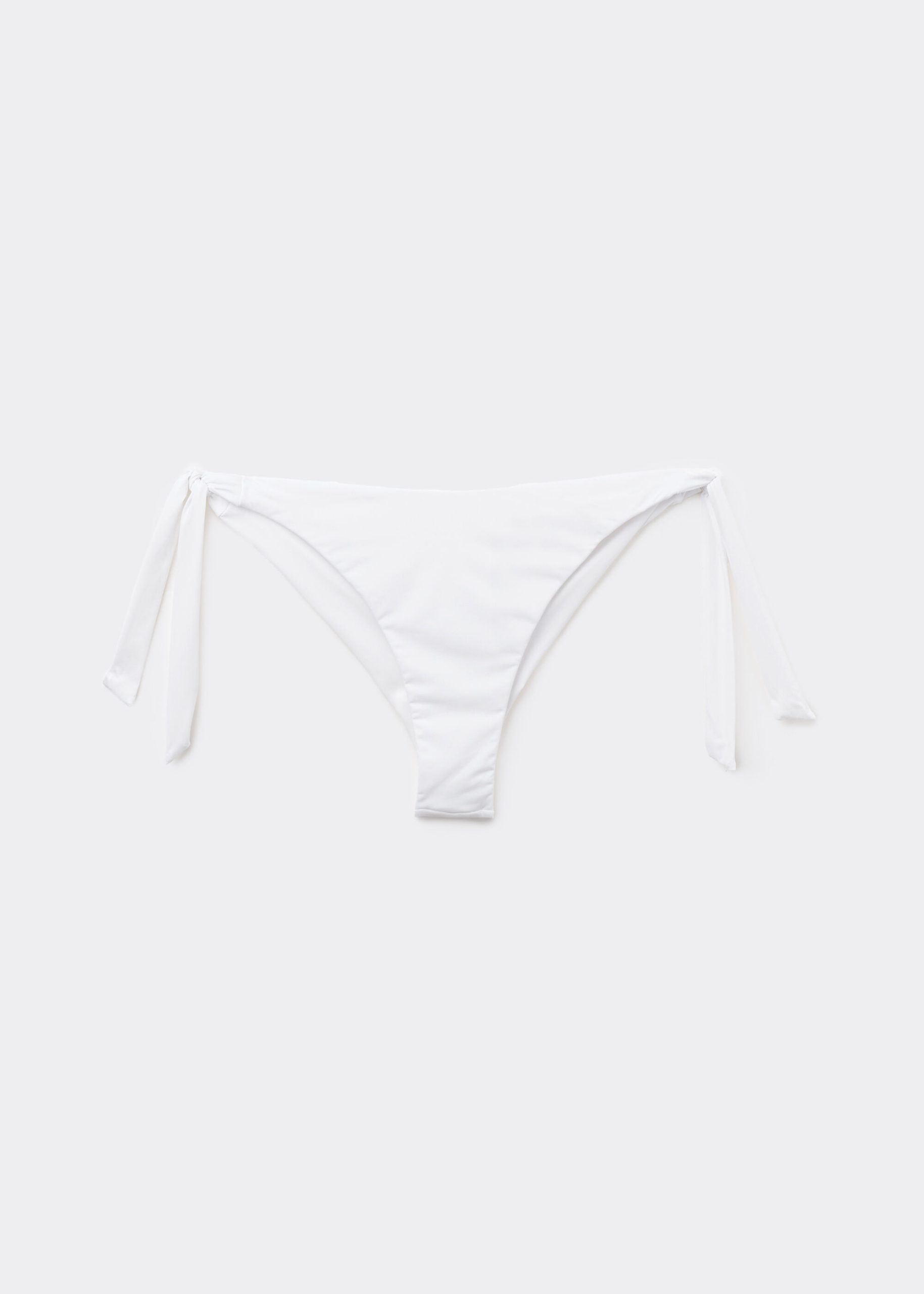 Elevate your swimwear with our Brazilian side tie bikini, designed for a customizable fit and modern silhouette. Featuring adjustable ties at the hips, these bikini bottoms allow you to tailor the fit perfectly to your shape, ensuring comfort and security for all-day wear. The slightly rounded front provides versatile styling options, whether worn in a classic fit or with adjusted higher sides for a leg-lengthening effect that enhances your natural curves. Crafted from luxuriously soft fabric, this adjustable Brazilian bikini offers a lightweight, breathable feel, making it ideal for long days at the beach or poolside lounging. The back features a central seam that enhances the fit, creating a sculpted, flattering look. Perfect for women seeking both style and practicality, these bikini bottoms combine premium materials with thoughtful design to deliver a must-have piece for your swimwear collection.