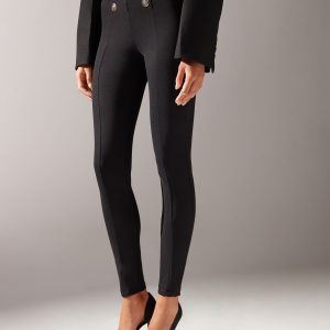 Skinny leggings inspired by the classic sailor design, made in dense shaping fabric, these shaping leggings hug your curves with comfort and style. The decorative gold buttons add a touch of refinement, while the central seam and waistband detail provide structure and define the piece.