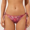 Brazilian bikini bottom with soft sides, featuring a bright fabric with a silky effect with ruffles. Fully lined with invisible seams.