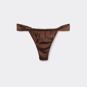 Brazilian bikini bottom with soft sides, featuring a bright fabric with a silky effect with ruffles. Fully lined with invisible seams.