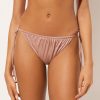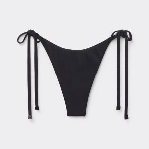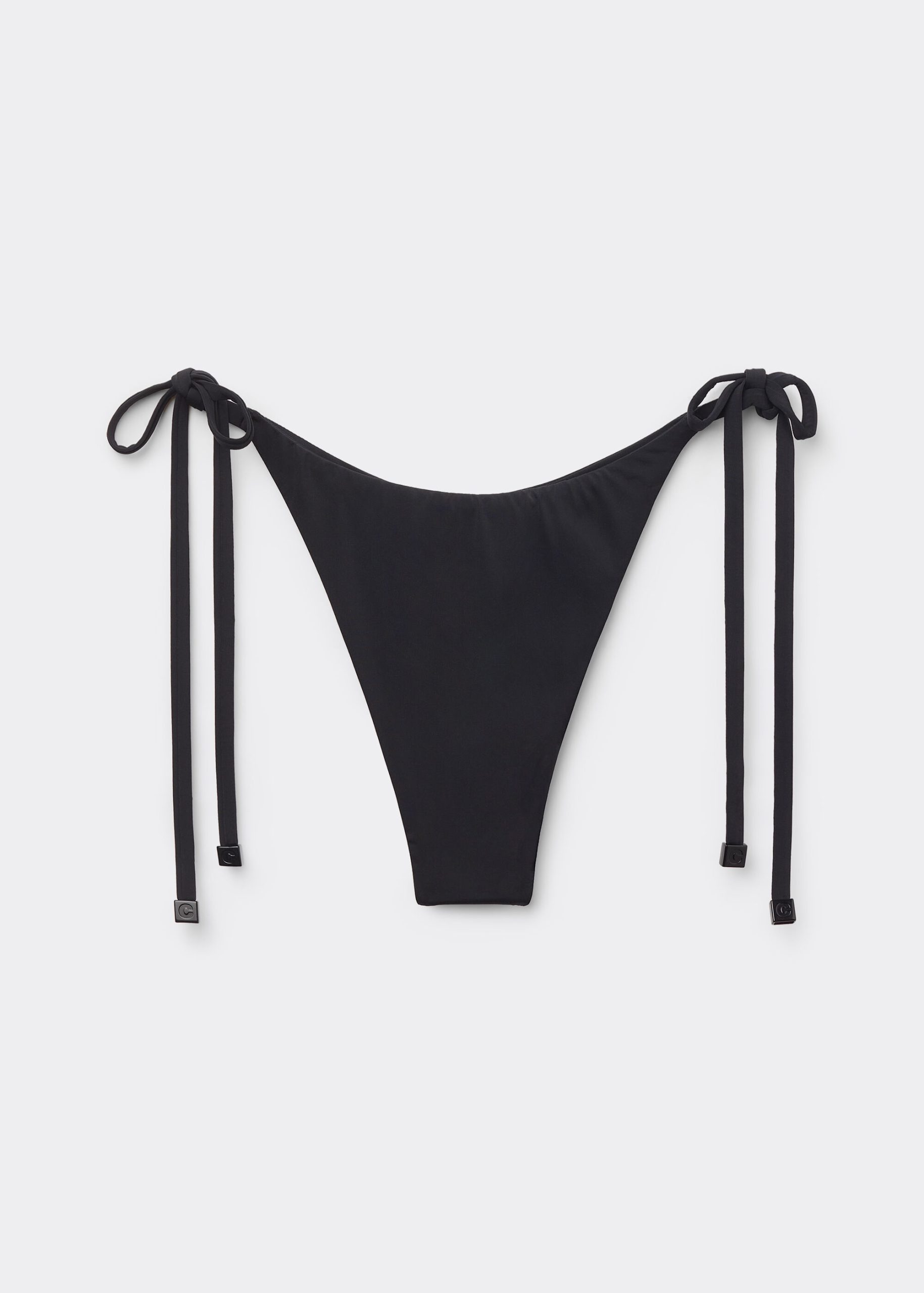 Thong bikini bottom with side string ties. The slightly rounded front allows for wearing it either as normal or with the legs higher on the sides to show off the physique. The extremely soft fabric makes it pleasant to wear, offering a light and comfortable feel on the skin. Fully lined with invisible seams.