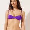 Thong bikini bottoms with side string ties to adjust the fit. It features a minimal fit that exalts the silhouette with a touch of sensuality and refinement. The slightly rounded waist at the front allows for both a regular and more high-cut fit, depending on one’s physique. The bright silk-effect fabric embellished by elegant golden details radiates a sophisticated sensation of discrete luxury. Fully lined with invisible seams.