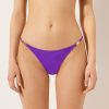 Thong bikini bottoms with side string ties to adjust the fit. It features a minimal fit that exalts the silhouette with a touch of sensuality and refinement. The slightly rounded waist at the front allows for both a regular and more high-cut fit, depending on one’s physique. The bright silk-effect fabric embellished by elegant golden details radiates a sophisticated sensation of discrete luxury. Fully lined with invisible seams.