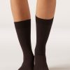 Women’s short socks in ribbed soft cotton, they offer style and comfort. The striped pattern adds a classic and versatile touch. Ideal for those looking for quality and a timeless look.