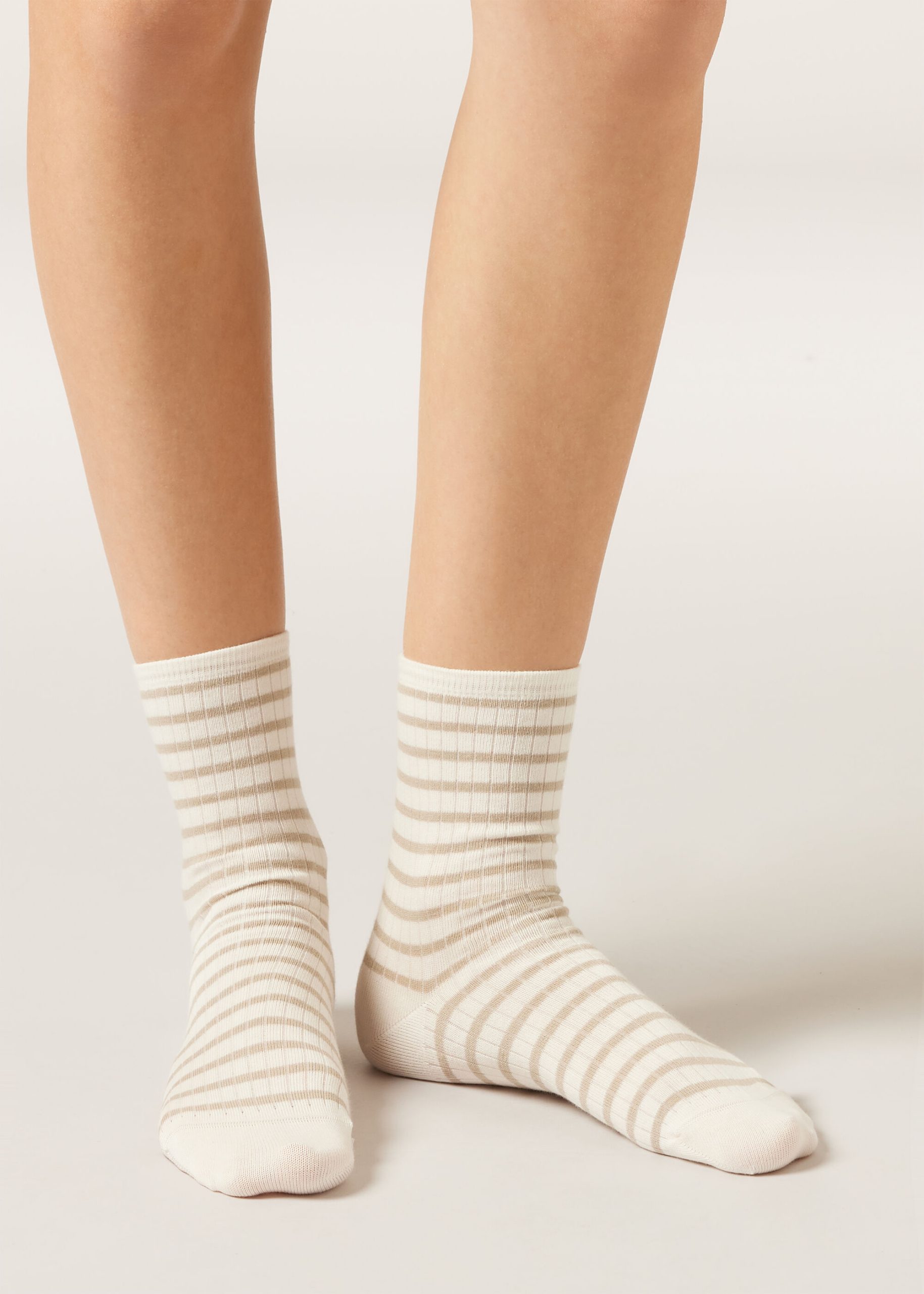Women’s short socks in ribbed soft cotton, they offer style and comfort. The striped pattern adds a classic and versatile touch. Ideal for those looking for quality and a timeless look.
