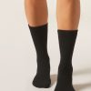 Women’s short socks in soft ribbed cotton combine comfort and a luminous style. The front stud appliqués make them unique, perfect for adding a rock-chic touch to your look.