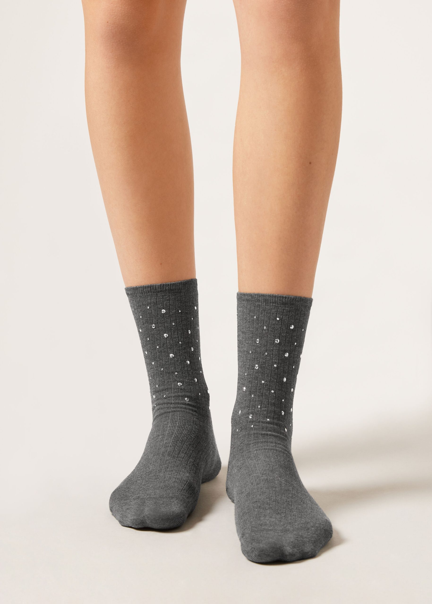 Women’s short socks in soft ribbed cotton combine comfort and a luminous style. The front stud appliqués make them unique, perfect for adding a rock-chic touch to your look.