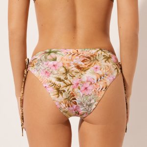 Super push-up bikini top with super graduated padding and underwire for a one-size-larger effect. Ruffly style detail at the center to create movement on the décolleté. A vibrant pattern that combines tropical floral prints and delicate colors with animal print details. Adjustable thin straps. Back hook-and-eye closure and adjuster to improve the fit of the band.