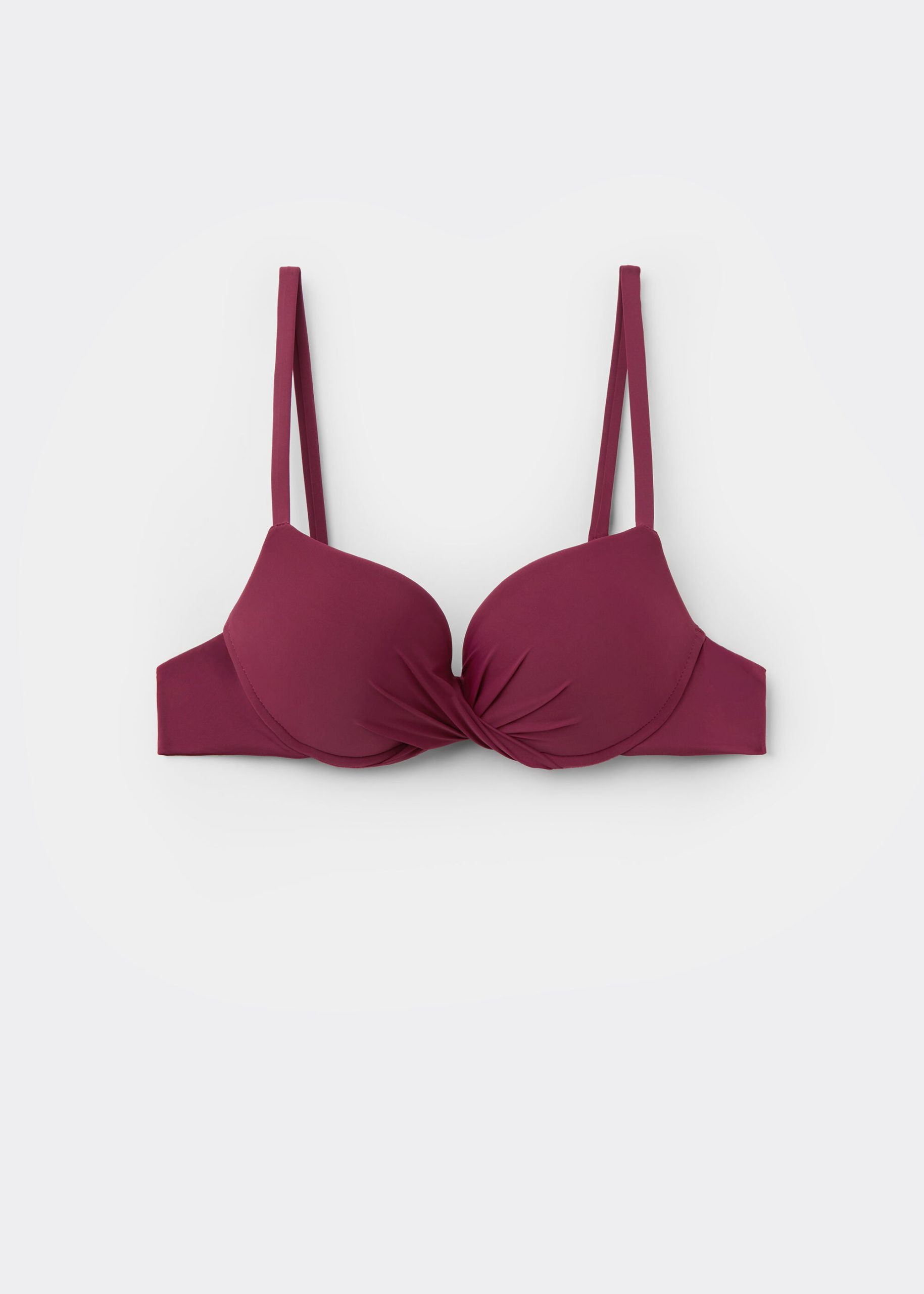Achieve a stunning silhouette with our lifting bikini top, designed for ultimate enhancement and support. This ultra push bikini top features subtle, graduated padding and underwire to create a flattering one-size-larger effect that beautifully shapes and defines the bust. The crisscross detail accentuates the low neckline and perfectly highlights your collarbones, adding a touch of elegance to the design. Made from incredibly soft fabric, this top offers a lightweight, comfortable feel for all-day wear. For a customized fit, the adjustable push-up bikini includes removable straps that can be crossed at the back or tied behind the neck to suit your preference. The hook-and-eye back closure with an adjustable band ensures a secure and tailored fit, that is comfortable to wear and easy to put on. Whether lounging poolside or enjoying a seaside getaway, this ultra lifting bikini top blends functionality with style, making it a must-have for women seeking both comfort and a sculpted look.