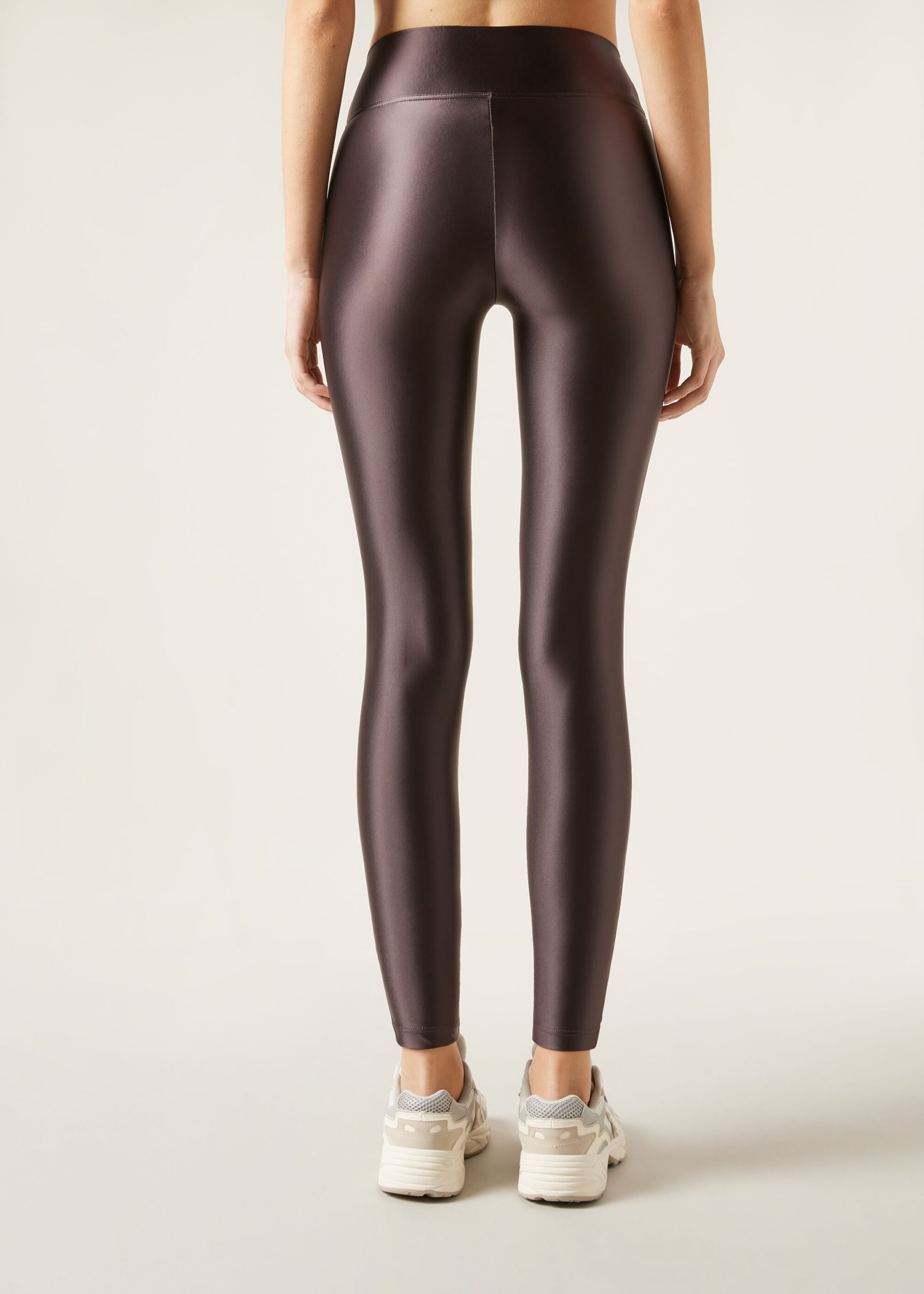 Women’s super shiny skinny leggings in silk effect stretch satin fabric. Waistband with soft, interior adhesive elastic.