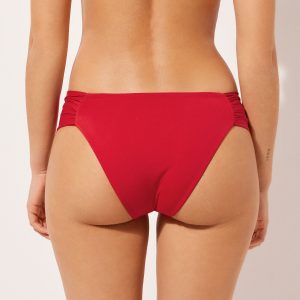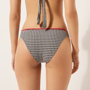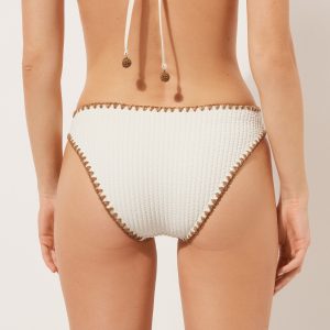 Fully lined bikini bottoms. The slightly rounded waist at the front allows for both a classic or more high-cut fit, depending on one’s physique. Soft fabric with shiny lamé thread.