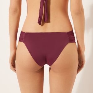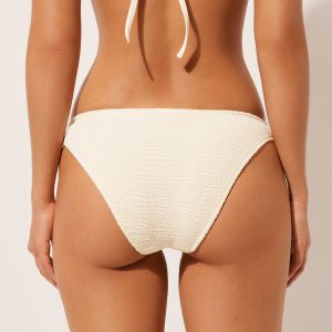 Fully lined bikini bottoms with invisible seams. The style features a bright fabric with a silky effect. The slightly rounded waist at the front allows for both a classic or more high-cut fit, depending on one’s physique.