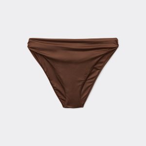 Fully lined bikini bottoms with invisible seams. The style features a bright fabric with a silky effect. The slightly rounded waist at the front allows for both a classic or more high-cut fit, depending on one’s physique.