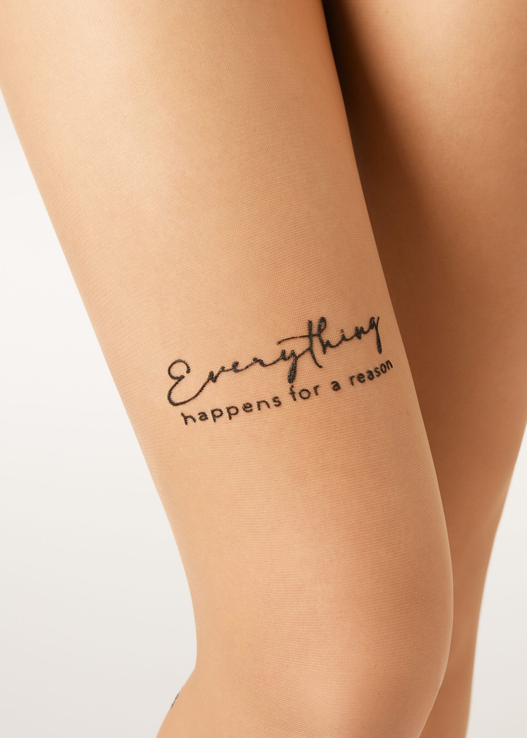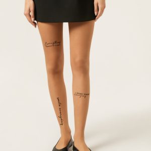 Twenty denier nude-effect sheer tights embellished with printed tattoo-effect writing. Soft waistband and cotton gusset.