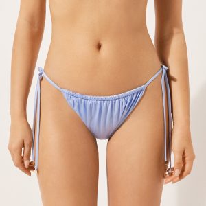 Thong bikini bottoms with adjustable thin sides. The slightly rounded front allows for wearing it either as normal or with the legs higher on the sides to show off the physique. Fully lined with invisible seams.