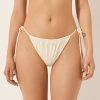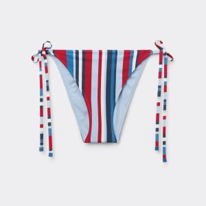 Bikini bottoms with adjustable fit thanks to the side ties. Made from soft microfiber with a vibrant multi-colored striped pattern, which adds a touch of freshness and color to the look. The slightly rounded waist at the front allows for wear with classic coverage or a higher leg, depending on your body shape. Fully lined.