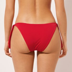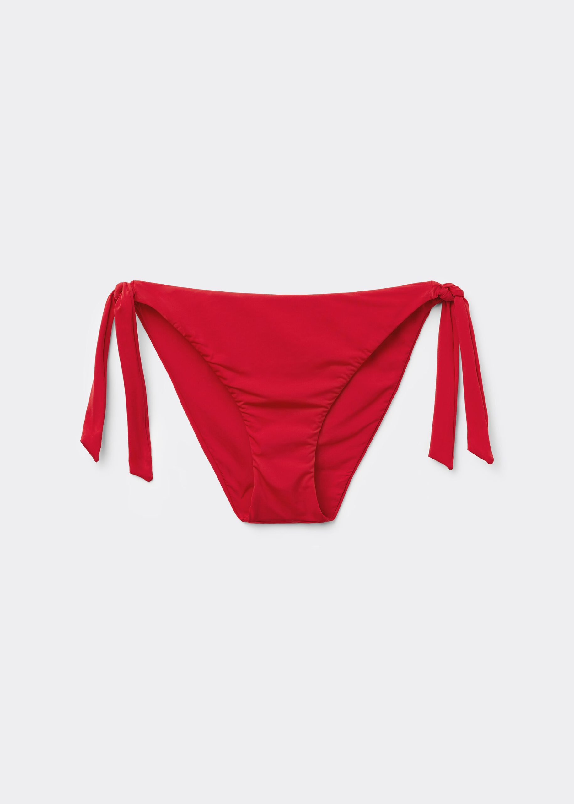 Bikini bottom with side tie closure to adjust the fit. The slightly rounded waist at the front allows it to be worn either in a classic style or a more high-cut fit, depending on one’s physique. The extremely soft fabric makes it pleasant to wear, offering a light and comfortable feel on the skin. Fully lined with invisible seams.
