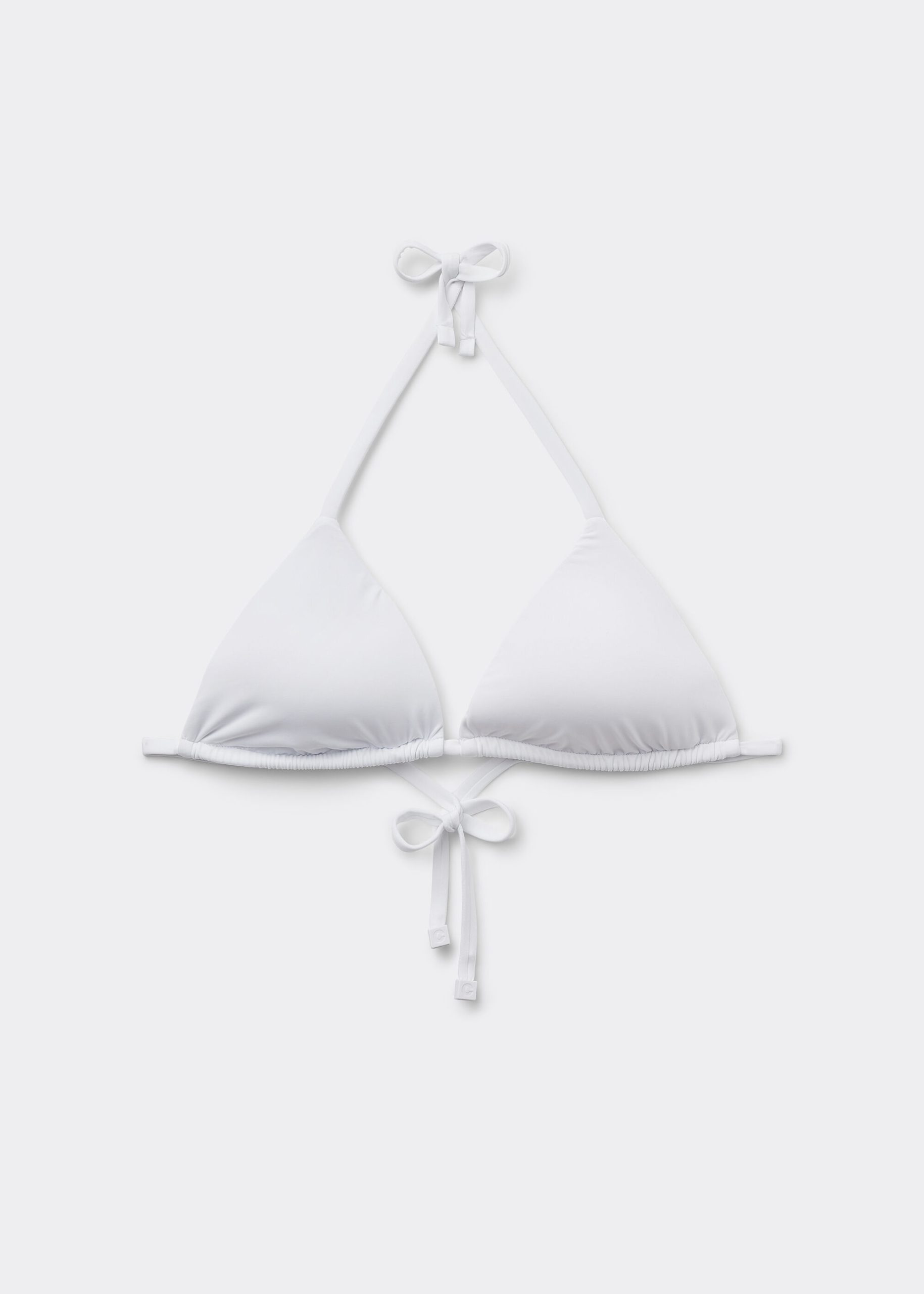 Slide triangle bikini top with removable padding, wireless for a natural effect. The extremely soft fabric makes it pleasant to wear, offering a light and comfortable feel on the skin. The shoulder straps have eyelets on the ends so they can be hooked onto the back band or tied behind the neck. Back string tie closure.