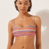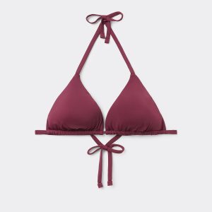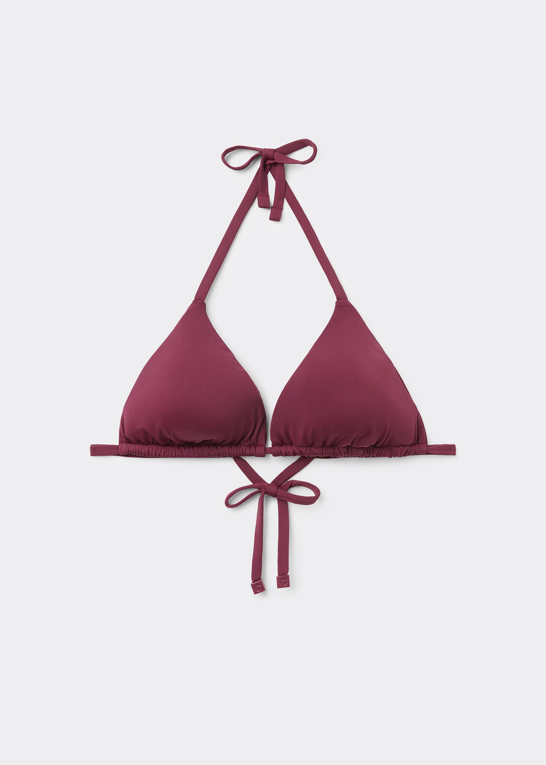 Slide triangle bikini top with removable padding, wireless for a natural effect. The extremely soft fabric makes it pleasant to wear, offering a light and comfortable feel on the skin. The shoulder straps have eyelets on the ends so they can be hooked onto the back band or tied behind the neck. Back string tie closure.