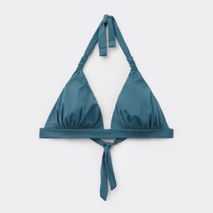 Wireless triangle bikini top with light removable padding. The compact fabric, designed to exalt and enhance the body’s curves, ensures excellent support and is studied to make every woman feel at ease without constraint. Adjustable shoulder straps. Back closure with two hook-and-eye closures to improve the fit of the underband.