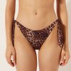 Slide triangle bikini top with removable padding and no underwire for a natural effect. The style features a particularly soft three-dimensional diagonal-motif fabric. The shoulder straps have eyelets on the ends so they can be hooked onto the back band or tied behind the neck. Back string tie closure embellished with silver tips.