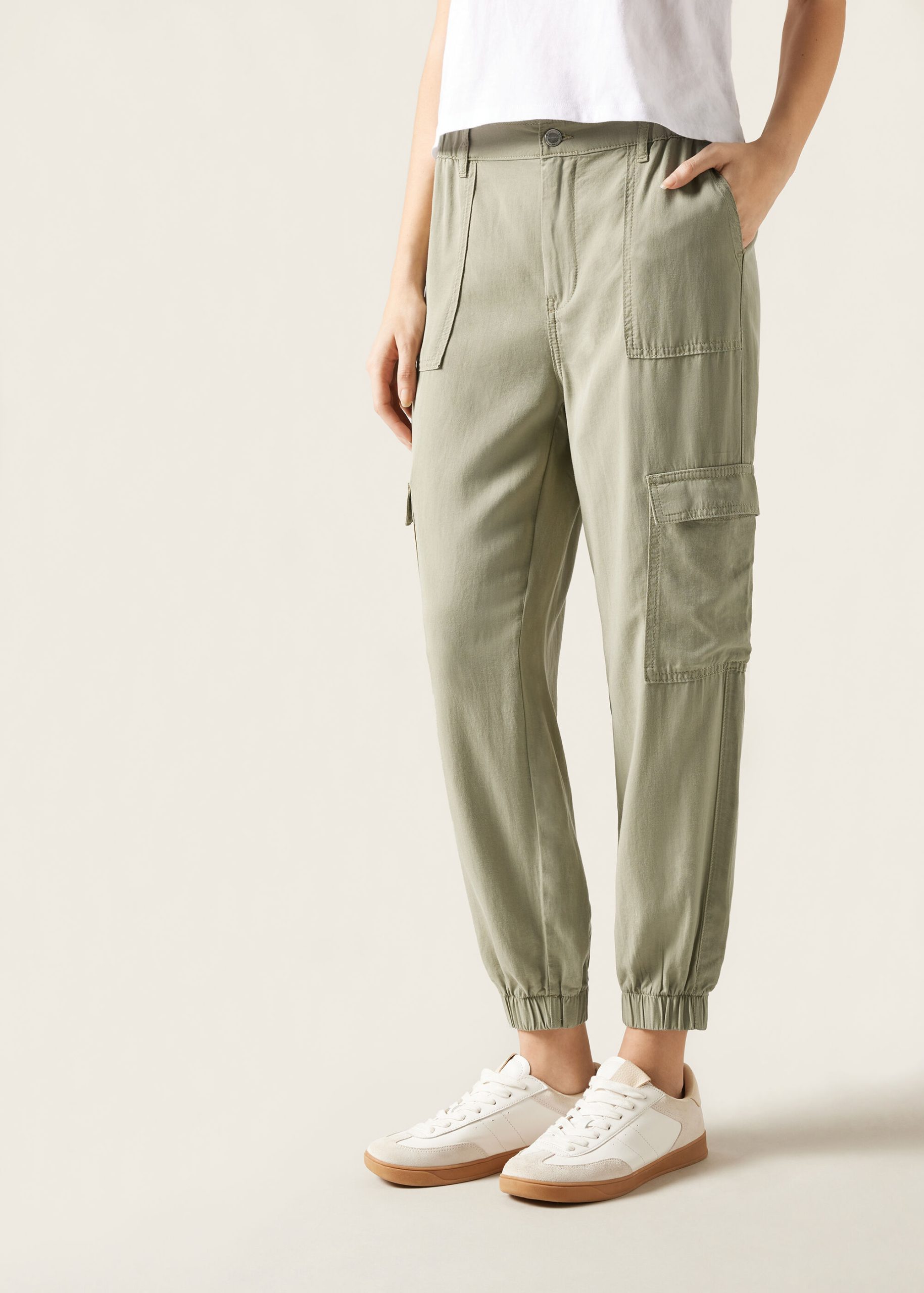 Cargo pants with zipper and button, enriched by belt loops. The elasticated waist guarantees optimum comfort as it perfectly adapts to the silhouette. Made from an ultra-light fabric that is soft to the touch, they combine elegance with practicality to create a sophisticated and relaxed look. The comfortable fit and practical design make these pants perfect for any occasion, whether for leisure time or everyday engagements, with a touch of natural and nonchalant style.